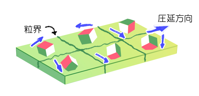 結晶粒が全方向にランダムに向いており、どの方向に対しても磁気が通りやすくなっています。