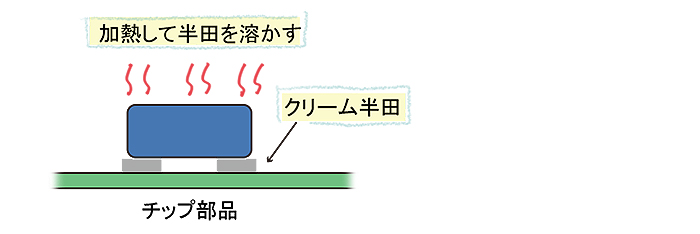 基板のランド部分にはんだペースト(クリームはんだ)を塗布(印刷)して、