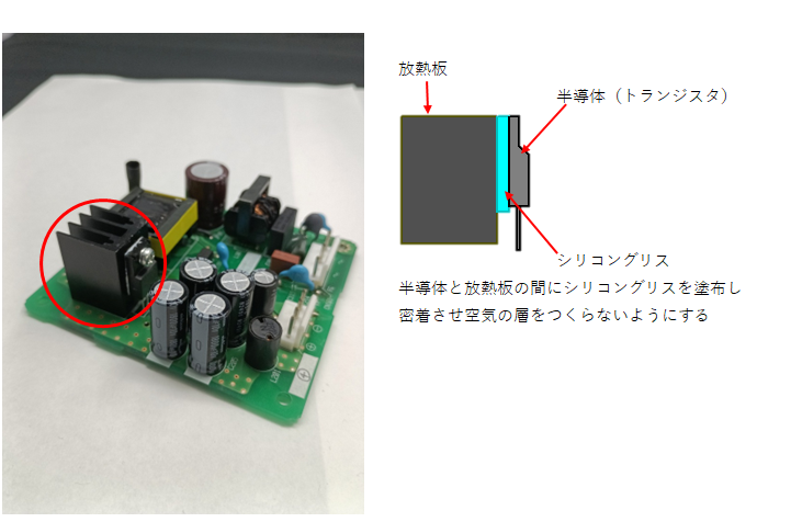 大きな電気を流す電子部品の半導体や抵抗器はとても高温になります。